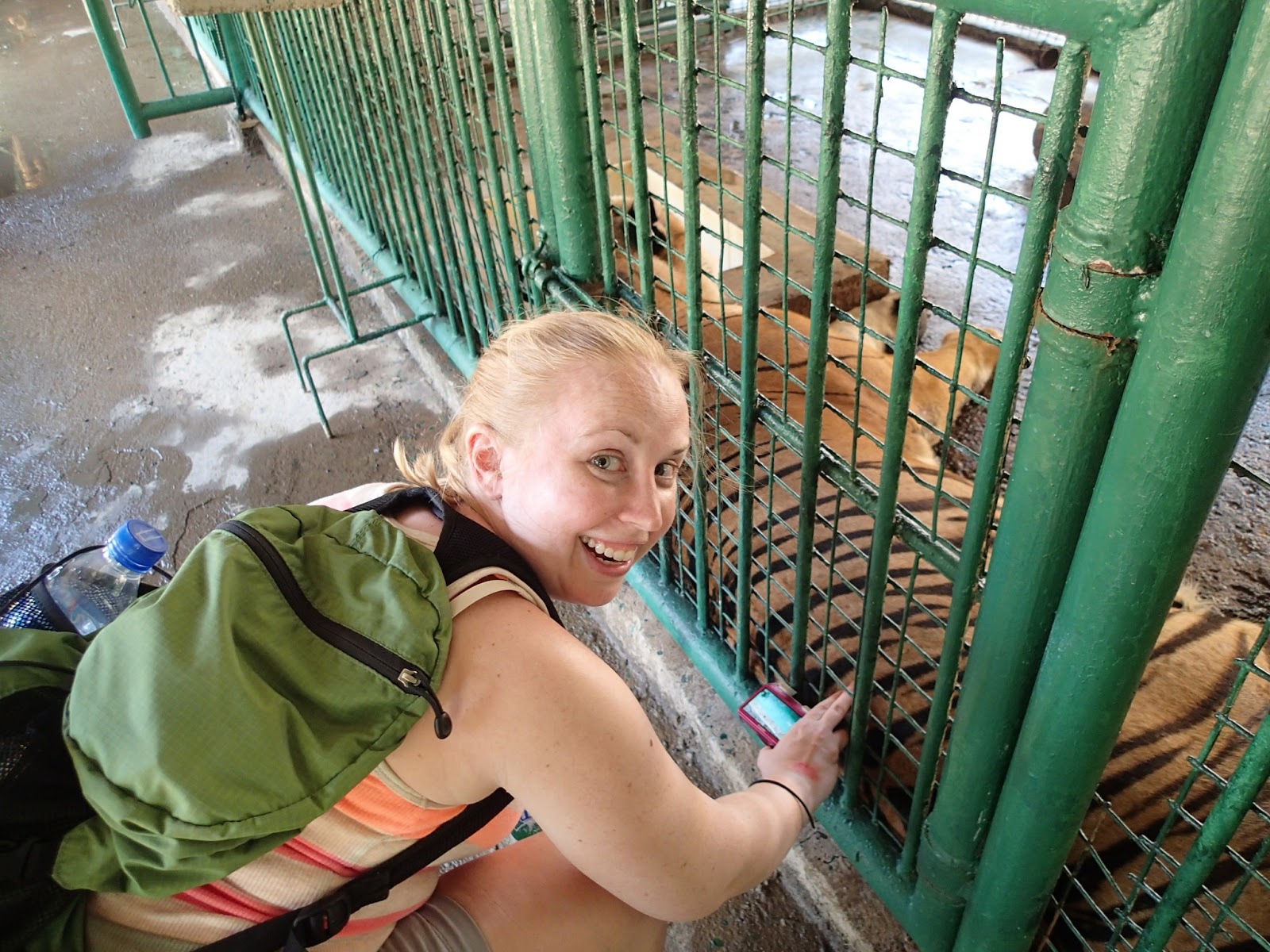 We were warned while walking next to the tigers that if they turn their butts to us to watch out because they might spray urine!